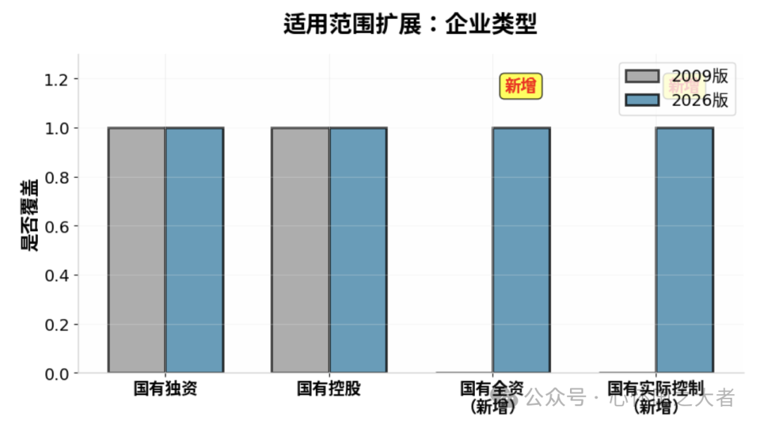 新《规定》在适用范围上做了重大调整,体现了“无死角、全覆盖”的监督理念。这一调整主要从“企业类型”和“人员类别”两个维度展开,确保制度的笼子扎得更密。