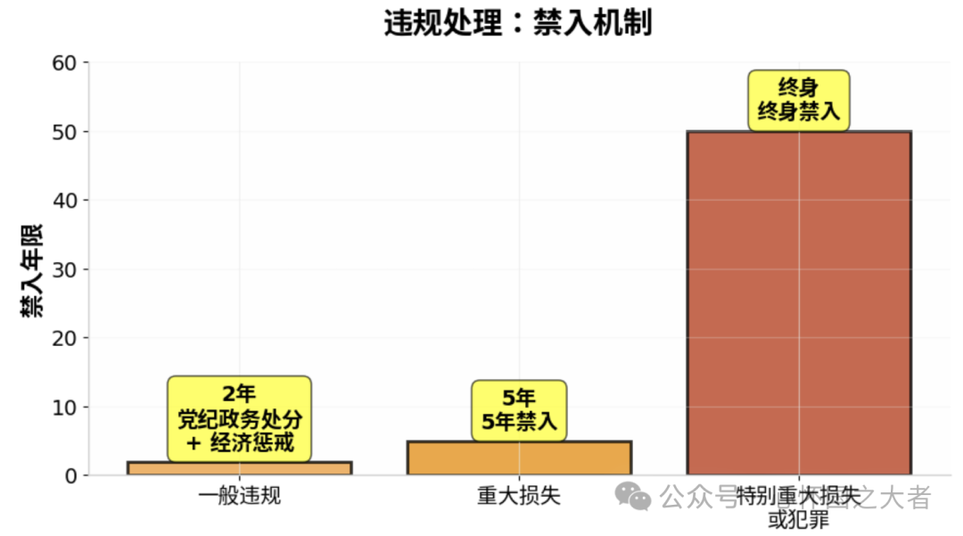 在惩戒措施上,新规实现了与《中国共产党纪律处分条例》《中华人民共和国公司法》等法律法规的有效衔接。对于违规人员,不仅要给予党纪政务处分,构成犯罪的还要追究刑事责任。